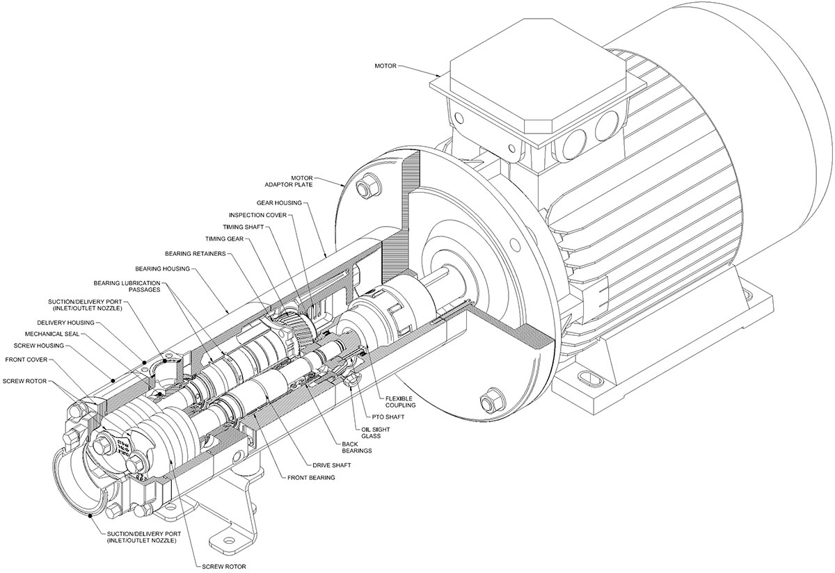 - Unlike other screw pumps on the market, this pump uses identical drive and lay screw shafts, simplifying both assembly and spares inventories.