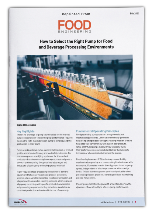 Read ArticleThe sanitary pumps used in food and beverage and pharmaceutical processing have special requirements that impact their overall cost. This is because of their critical role in safety and their need to be thoroughly cleaned. When selecting a pump for a processing line, total cost of ownership (TCO) should not be left until the end of the discussion.